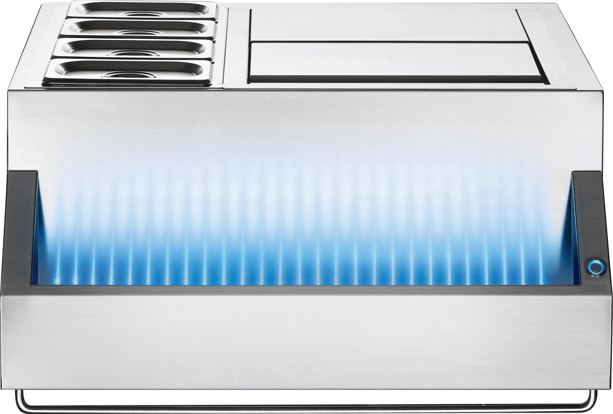 Add the luxurious touch of your own personal drinks station with Napoleon's Multifunctional Beverage Center to your custom outdoor kitchen. Made from durable stainless steel, this fully insulated cabinet is perfect for keeping things cold and has a 60-liter capacity. Make prep easy or have great garnishes on hand with four 100-ml containers. The party keeps going after dark with the iconic WAVE™ pattern LED NIGHT LIGHT™ backlit bar trough that keeps cold beverages close at hand.Read More