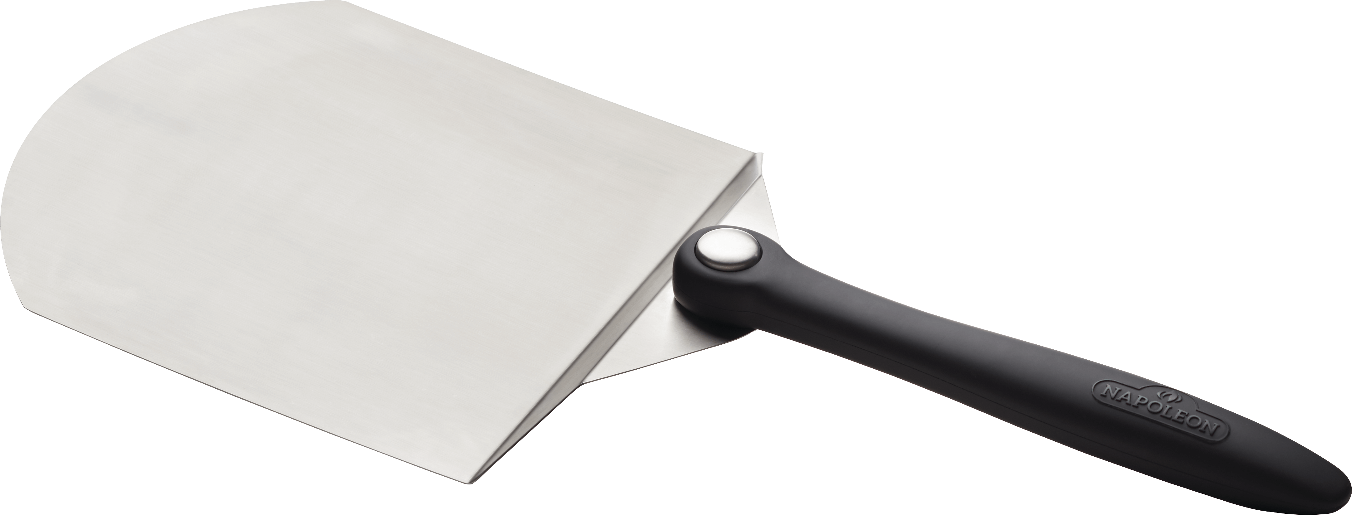 Napoleon PRO series stainless steel Pizza spatula with large head and fold-away handle. Large, strong, long lasting for a solid hold of your pizza. The stainless steel edge slips smoothly under the pizza for consistent handling. The fold away wooden handle allows for easy storage in tight areas such as the grill cabinet.