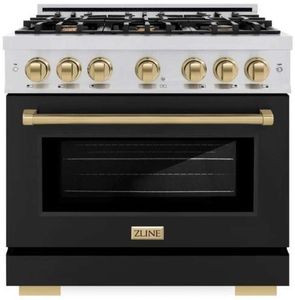 Luxury isn’t meant to be desired - it’s meant to be attainable. The ZLINE Autograph Edition 36 in. 5.2 cu. ft. Select Gas Range with 6 Burner Cooktop and Convection Gas Oven in Stainless Steel with Black Matte Door and Champagne Bronze Accents (HGRZ-BLM-36-CB)Read More